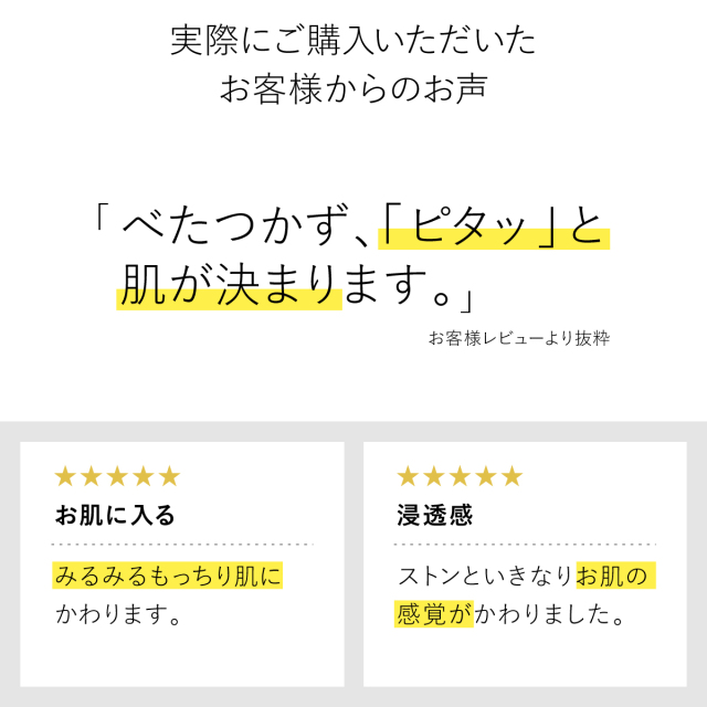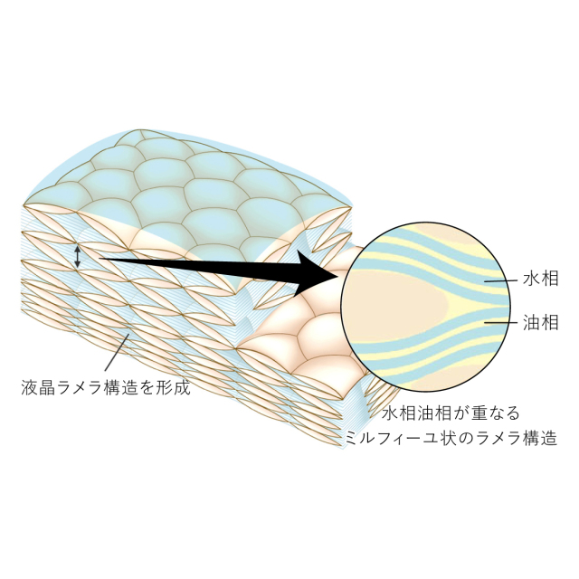 ストンと角質層の奥まで浸透し、ミルフィーユ状にうるおいとハリで満たされむっちりした肌へ導きます。