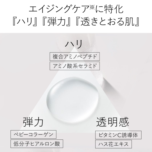 柔らかくふっくら立ち上がる使用感でその後のケアの手応えを高める肌の基盤をつくります。