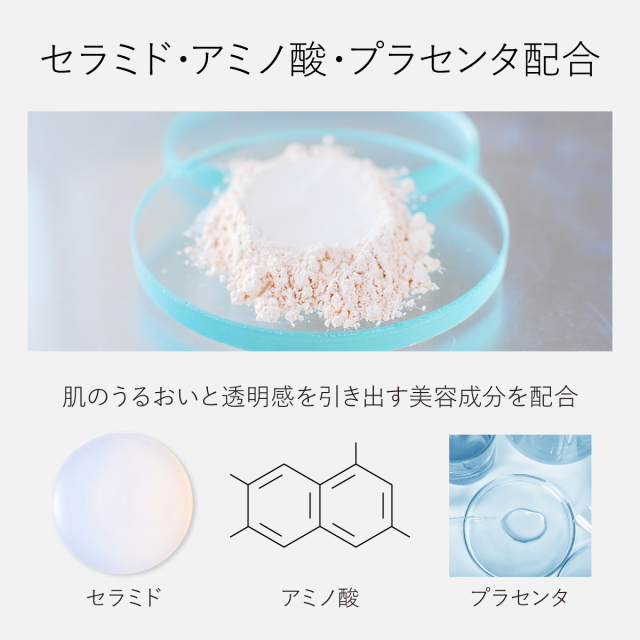美容オイルと保湿成分(セラミド・アミノ酸)を配合した“オイルイン設計”で、乾燥しがちな肌にもなめらかに。