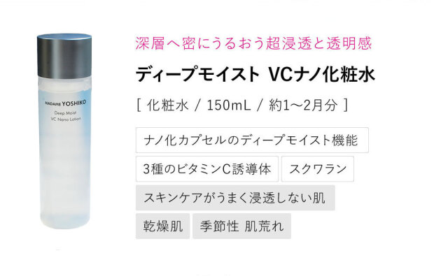 | 商品名 | ナノ化粧水 ディープモイスト150mL(VCナノ化粧水・ビタミンC誘導体配合) |